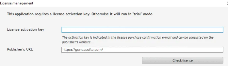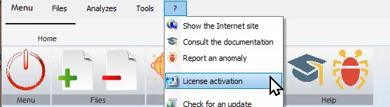 To activate the application, display the license management window (menu “?” / option “License activation”)