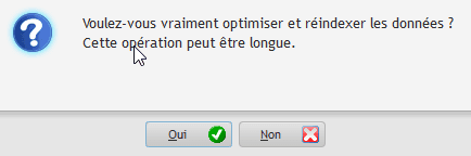 Cette optimisation est normalement faite automatiquement pendant l’usage de l’application. Ne lancer cette action que si vous estimez que les temps de réponse sont dégradés.
