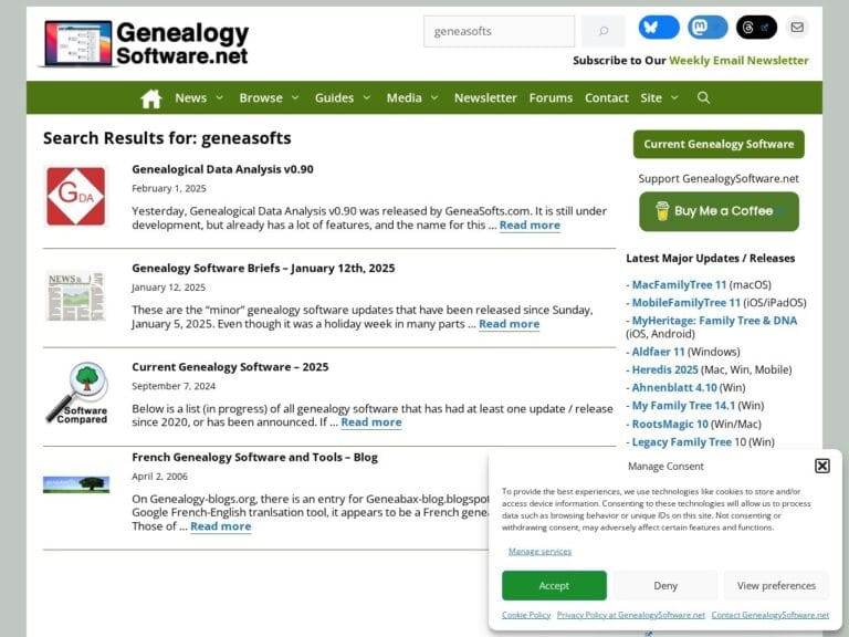 Genealogysoftware.net référence de nombreux logiciels et autres ressources pour les généalogistes. Genealogysoftware.net publie des informations sur nos logiciels et leurs mises à jour.